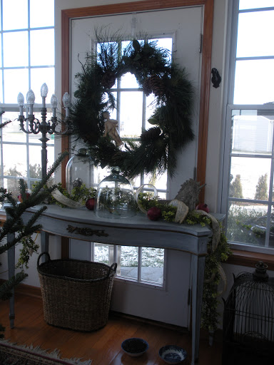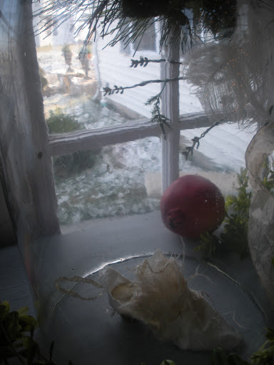 We strung the snowflakes on gossamer ribbon and draped them in the window of the family room, where we can see them all the time!