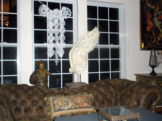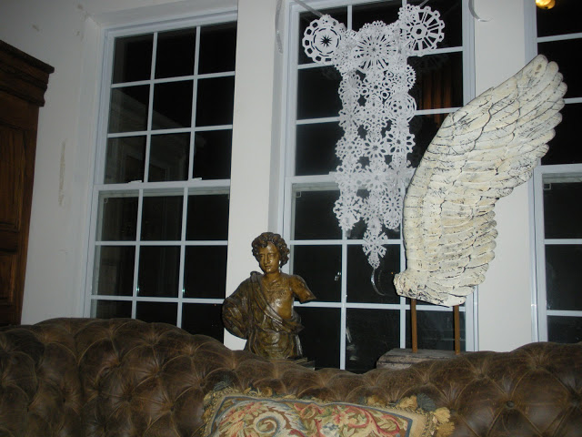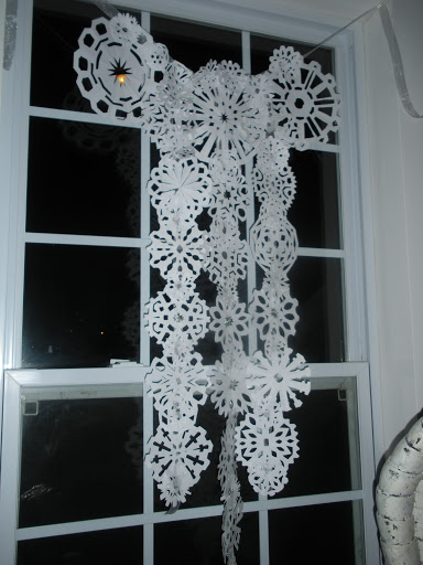 Gracie and I made a garland of Richard's snowflakes. I hope he considers them worthy! I could not get decent photos during the day so I waited until tonight.