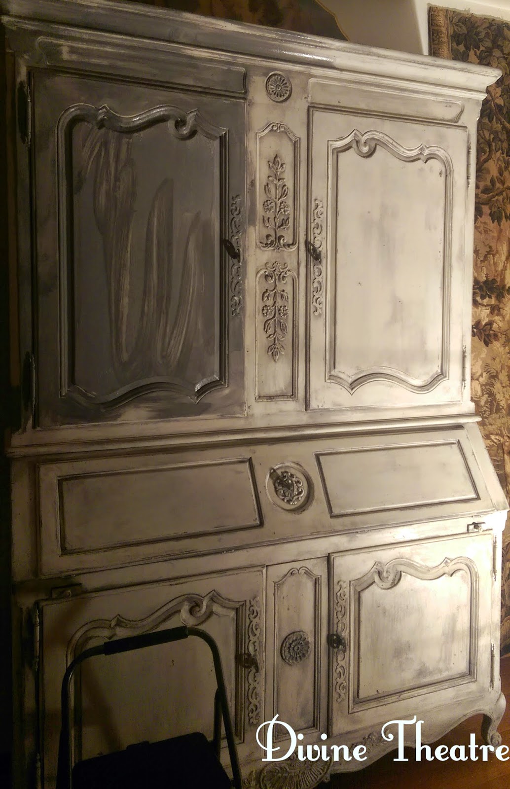 I painted the vitrine with Annie Sloan Paris Grey and gold metallic craft paint.