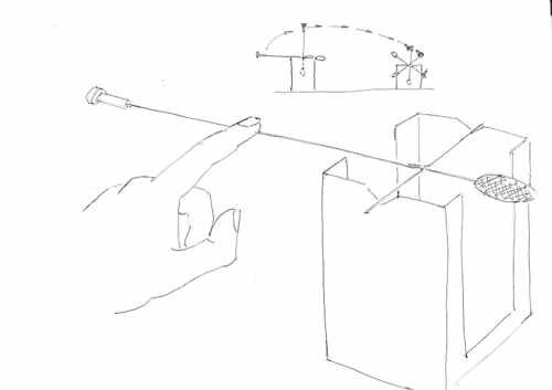 towards a target made from the other magnet attached to a counter-balanced pivot in such a way that the target spins round when the projectile hits it.