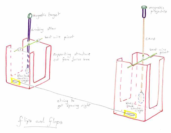 It flips a projectile made of one of the magnets attached to a tail made from a short length of drinking straw