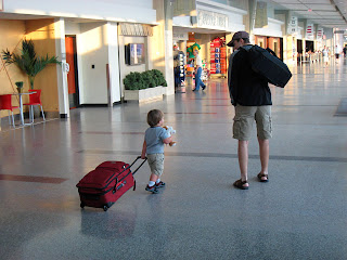 At the airport waiting to board... Aden was checking out our plane...