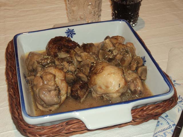 Este es un pollo guisado muy sencillito y fácil de hacer, pero que sabe y huele fenomenal...con un olorcito de estos que te transportan a la provenza francesa o a la toscana, como si estuvieses en la escena final de Deliciosa Marta, compartiendo una comida campestre con el encantador Sergio Castellito.