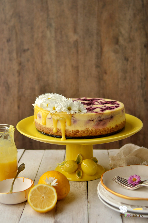 Retire a base do cheesecake da geladeira e despeje o creme por cima. Em uma assadeira maior, coloque a forma do cheesecake dentro. Preencha a assadeira com agua até atingir a sua metade. Leve o cheesecake para assar por 40-50 minutos, verificando regularmente após 40 minutos para se certificar que não está queimando. Teste sacudindo a forma – o recheio deve tremer levemente.