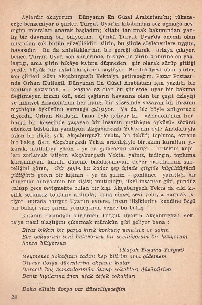 Şairlerin varoluş biçimini düşünmeye çalışıyorum kaç zamandır… Bu problematiği tutarlı bir yöntemle -örneğin soyağacı yaklaşımıyla- irdeleyemiyorum, bir akrabalık sınıflaması da yapamıyorum. Fakat, imgelemin özgürleşmesi açısından bir yakınsama-ıraksama durumundan veya konumlanma yaklaşımından söz edebilirim. En azından, benim için, Türkçe’de; Ece Ayhan ve İlhan Berk’in poetikası yakınsadığımı düşündüğüm bir imgesel alan derinliğini ihtiva ediyor. Eh, bu alan derinliğinin sezgisel gücünü bilenler, ıraksadığım şeylerin de neler olduğunu tahmin edebilirler. Birkaç örnek vereyim: Yığışımlardan, popülizmden, mevcut (cukkacı) belediyecilik zihniyetinden ve diğer (arpacı ve uzun) halay takımlarından uzak duruyorum. Rantçılardan, hızlı tüketimsel endüstri kültüründen ve bu kültürün yarattığı satışçı, pazarlamacı, vitrinci ve mağazacı yaklaşımların tamamından nefret ediyorum desem, yeridir. Bana göre kapitalizmin yarattığı en büyük ve iğrenç kötülükler bunlardır.