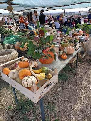 Ci siamo ritrovati in un'atmosfera campagnola tra balle di fieno , carri e zucche!