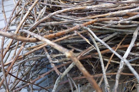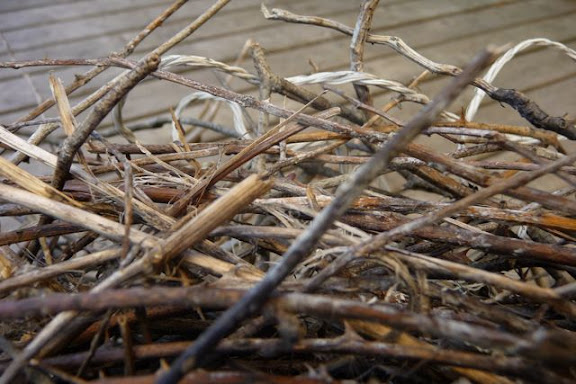 Funny, this morning I was wondering about what photos to publish with this post when Bren came in with this nest the boys had found in a tree they cut down yesterday. This nest is such a perfect metaphor for a mother preparing and nurturing her babies. This nest is also a perfect symbol for my role in my family, as it is woven from bits and pieces found around our farm, my home. That clever bird dragged twigs, cable ties, bits of wire, blackberry, hawthorn, willow, hay band and anything else it found to make the best, cosiest nest for its chicks.