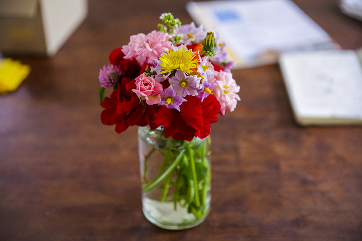 I am loving the little posies of garden cut flowers that have been appearing in jars around the place.