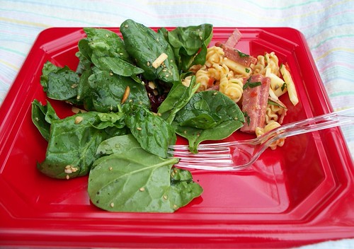 While the family has been enjoying not waiting until the food photo session is done to be able to eat, I find that have missed blogging. I enjoy taking pictures of food and writing about it. I’ve wanted to tell you so many things in the past few months — Cocomero (frozen yogurt on UI campus) is fantastic, if a little pricey for a family outing (and they really should consider buying ‘troughs’, like a banana split boat, rather than a deeper container so you can try more of the 16 flavors without them smooshing into each other). Have you checked out the recycled aluminum foil? It costs a little more than regular and it’s a little thinner, but it works just fine. FoodBuzz kindly sent me some food samples to review — Emeril’s chicken stock is good but I’ll stick with Meijer, however, his Chicken Rub is fantastic! Tartlet 1 is hooked on his Kicked Up Horseradish Mustard.