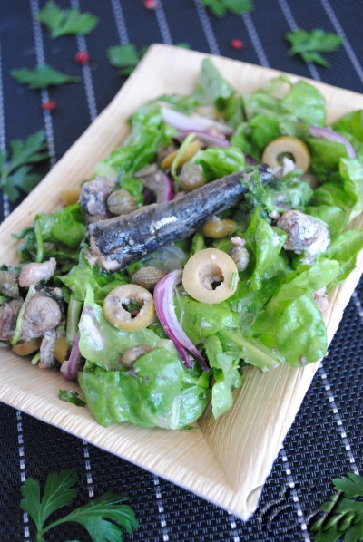 Nagyon finom, laktató, tápértékben gazdag, de kalóriában szegény saláta. Aki a kapribogyót nem szereti, az el is hagyhatja. A szradíniát pedig helyettesíthetjük másfajta hallal is.