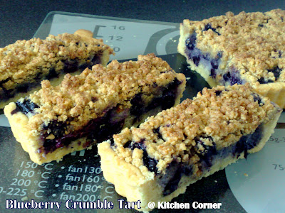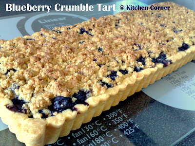 This is something that the 'English favorites' and also my Mr. favorite. His every bite will naturally came out with an "uhmmmm......" kind of yummy voice and make me feel so happy that I've made it real good, it's just a very encouraging kind of voice. I've control the sweetness of the entire pastry which is from the tart to fragipane as well as the crumble. The sweetness from the blueberry is very fresh and juicy. I find that all ingredients are just so friend to each other which the ground almond fragipane enhance the flavour and the crumble toppings give it a bonus texture. Smell good and taste good!