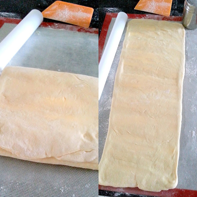 - After laminate dough and butter, roll out the dough 22 x 8 inch (55 x 20 cm) , chill for 1 hour