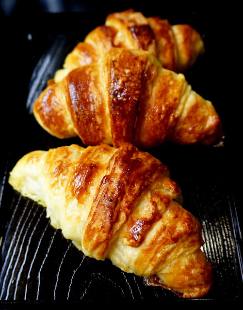 Here is my very first attempt on Croissant. It wasn't easy as the process very time consuming as well as the weather really give me a big challenge. I was like running a marathon with the hot weather to roll out and fold in the pastry to avoid the butter melted in very short time.