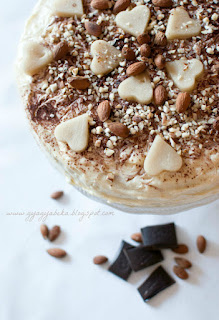 5. A tortát bevonom a vaníliás krémmel, majd a tetejét mandulával és marcipánnal díszítem. Hűtőben kihűtöm, pár óra múlva már szépen szeletelhető is. :)