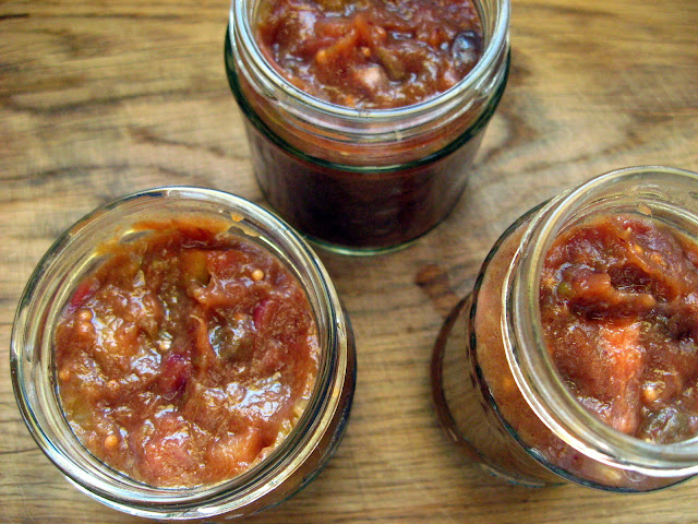 Zrobiłam wczoraj chutney rabarbarowo-daktylowy. Fajnie jest móc sięgnąć zimą po własne przetwory albo dać komuś słoik samodzielnie przyrządzonych powideł, dżemu czy chytney'a w prezencie.