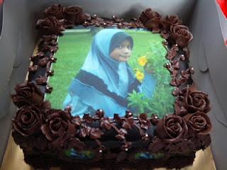 Kek coklat moist dgn edible image utk harijadi anak Kak Tie. Kak Tie ni seorg yg sgt ptgkan famili dan seorg wanita yg lemah lembut. Kak Tie ni pakar buat biskut dan juga menerima tempahan biskut utk hariraya dan majlis2. TKasih kpd Kak Tie yg sudi menempah kek dgn saya dan saya doakan Kak Tie dimurahkan rezeki dan sentiasa bahgia bersama keluarga tersayang.