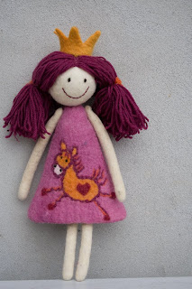 Princess doll, 38 cm tall, hand dyed carded wool, wool and cotton yarn
