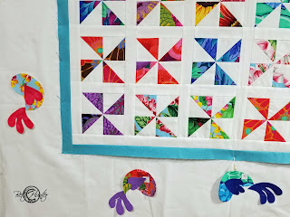 The Gecko, is a block for a friend. I used the donut method, where you cut the center of the larger parts of the motif out of the center of the fusible, so I could compare how it felt... in the fused and not fused areas. I could detect the fusible, but barely. I had a bit of difficulty with the eyes and toes, and resorted to an old standby for fusing those. Not sure if the difficulty was me or not , but I was out of time and needed to get this completed. The block is a little over sized at 11", but I wanted to leave a bit extra for trimming.