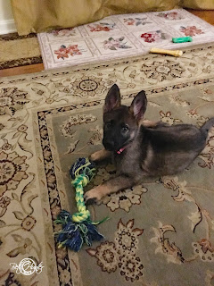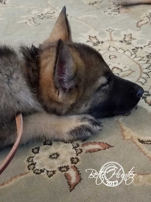 To give Linzi some peace from Bandit, I used to take her up to the sewing room with me after dinner. She would =find a place and just rest. Not often changing locations. Now, because Goldie is still a puppy… I still give her the peace and she knows the phrase ‘take Linzi up with me’.