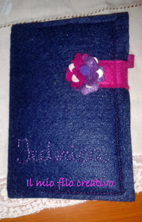....un copriagenda personalizzato, e un porta pc portatile in feltro di cui non trovo le foto; e devo ringraziarla col cuore Giusy perchè mi da spazio nella realizzazione dei oggetti che spesso mi commissiona nell'utizzare tutta la mia creatività!!