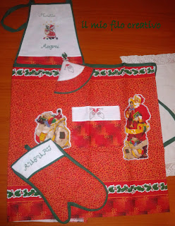 ...due bavettoni per il papà di Francesco e due grembiuloni da cucina per gli zii, realizzati con la tecnica dell'appliquè;