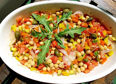 Quest'anno, ispirata da un piatto fatto da un'altra amica di cucina, mi sono messa a cercare "insalata di ceci" e ne ho trovato una che potevo realizzare con gli ingredienti che avevo in casa.