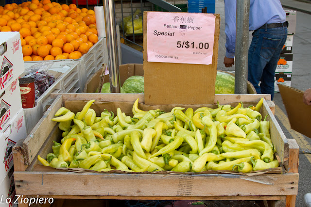 A Chinatown ho trovato le banane-peperoni. Non ho avuto il coraggio di provarle. Qualcuno di voi sa se sanno di banana o di peperone? O forse sanno di tutt'altra cosa!!!