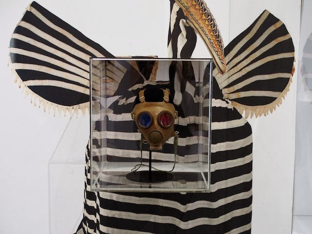 Colour, sex, humour, surrealism, tribal motifs, fantasy, sado-machism, innocence, playfulness, exaggeration, psychedelia, cartoon superheroes, war, disorientation are all words and themes that came to mind when viewing the exhibition, and not typically ideas you expect to find existing in apparent easy harmony. Colour and humour definitely being the glue holding firm these normally juxtaposing ideas - humour eh? Such a leveller! But deliberate juxtaposition now seems such an lazy concept in comparison to making opposites work in such unity. WvB also has an evocative and completely spot-on way with words; Dream the World Awake is exactly what you do in this exhibition.