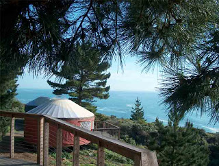 Last night I posted that Jerome and I will be staying at the Big Sur Lodge this weekend. Upon further discussion with Jerome, he informed me that he wanted to book the lodge, but they were full, and we are actually staying at the Treebones Resort. Why is this funny, you ask? Well, besides the fact that I think Jerome was asleep when he made the rezzy...the Treebones is actually "luxury" camping, not a hotel. We are staying in a Yurt, which is a permanent tent. There are communal bathrooms, no TV or phones, a noise curfew, and all dining is a good 45 minute drive (the website actually suggests you bring a cooler of food). This is totally not what we had planned! Yes, we love to camp, and the views are supposed to be spectacular. But, I have this thing about public restrooms...and did I mention public showers? Even more shocking, this place is actually 35 minutes from Big Sur, so we are not even staying in the area we thought we were! Our plan is to bring plenty of wine, books and the Ipod doc. We actually thought of canceling and heading to Santa Barbara instead, but you have to pay ahead and they have a "no cancellation" policy. We leave Friday night after I get off work, so I will post about our experience next week. I have done some research on Yelp, and the place has gotten great reviews, although it may be boring, so I am somewhat excited for the new adventure. Knowing Jerome and I, we will have plenty of laughs and antics to share! Until then, wish us luck!