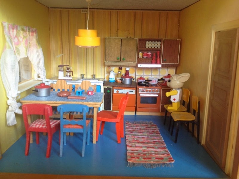 Mobiliasta tykkään enemmän, ja siitä piti tulla paikka, johon voin haalia ihania vanhoja Lundby-kalusteita. Meillä käy kuitenkin niin paljon leikkiviä vieraita, että ihan turha haaveilla moisesta. Kalusteet vaihtuvat, järjestykset muuttuvat, lisää kaivetaan jemmasta ja turhat laitetaan pois varastoon, eli turha kuvitella mitään Lundby-museota tänne :D.