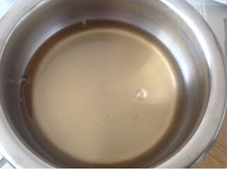 Posar el sucre i l'aigua al foc. Utilitzar un termòmetre de sucre per controlar la temperatura.