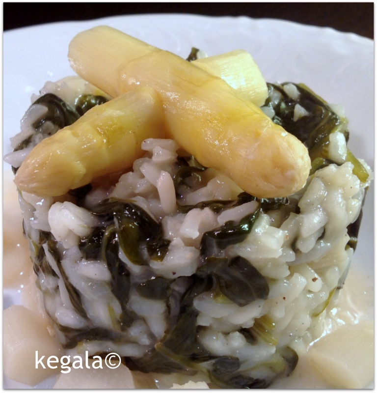 Soviel heißen Spargelsud zugießen, bis der Reis bedeckt ist