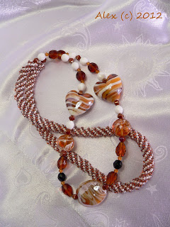 Dnes se chlubím cizím peřím, protože tenhle náhrdelník jsem jen zkompletovala :) Ruskou spirálu si navlékla moje kamarádka Dana sama a úžasné lampovky ulovila během našeho letního výletu do Jablonce a Poniklé. Myslím, že si vybrala dobře, že?