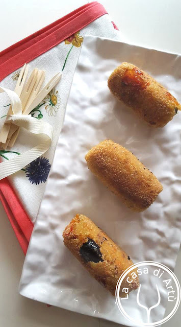 - Tagliare a rondelle le olive e disporle sul prosciutto