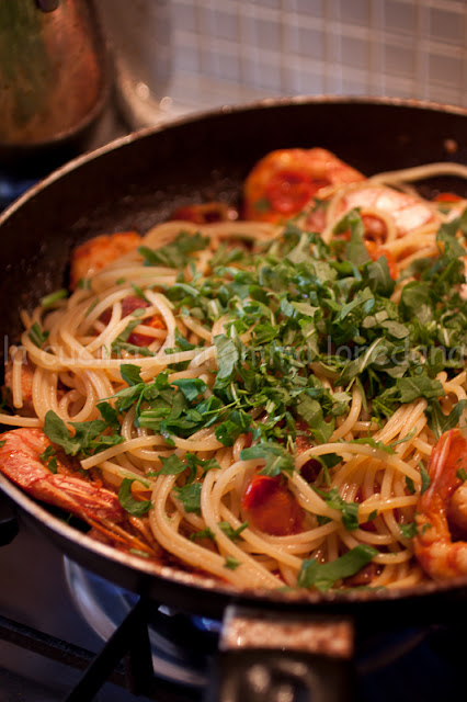 Non riuscirò mai a ringraziare abbastanza la bravissima Arianna, vincitrice della sfida sugli spaghetti: con la sua proposta ha naturalmente avuto immediatamente il consenso del piccolo di casa, mentre la figliola ha subito fatto richiesta di una versione vegetariana...io, che sono una madre perfida, ho realizzato una ed una sola versione per 4, esclusivamente a base di carne, ma il profumo ha talmente stuzzicato le narici della vegetariana in erba ( mi sa che sono ispirata!!!!), che ha prontamente svestito l'abito di mite agnellino ( sempre per restare in tema di erba) per indossare quello di lupo famelico.