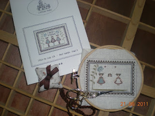 La verdad es que me encanta, tanto el esquema como los colores que lleva el bordado, así que me armaré de paciencia y lo terminaré porque el trabajo una vez montado es un guarda tijeras, un fob (o encuentratijeras como yo digo) y con sitio también para llevar agujas.