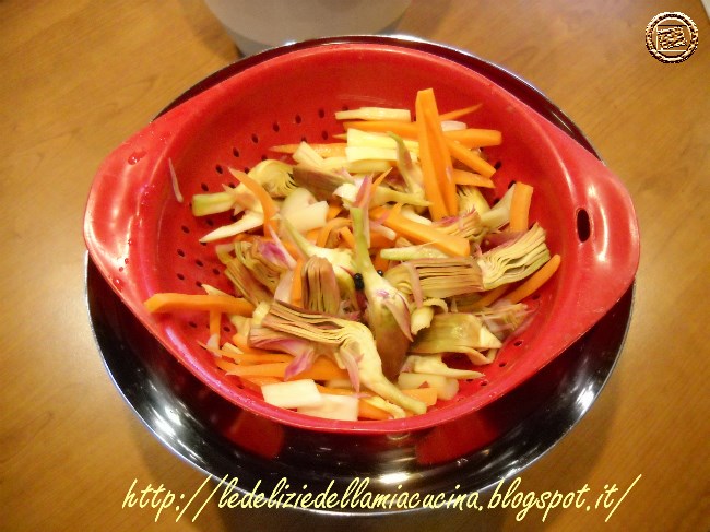 con 4 cucchiai di olio evo, in una padella con il coperchio, finché saranno teneri (2) (3).