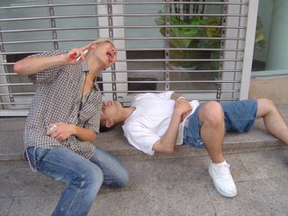Daniel feeling the pinch from a long night out. He was fine the next day. Young bodies heal quick.
