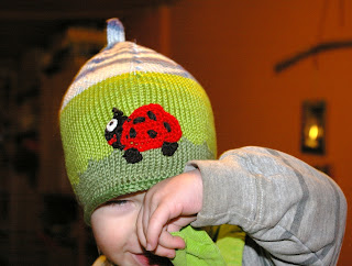 Ich hab noch niiie irgendetwas gewonnen, ihr könnt euch also vorstellen, wie sehr ich mich gefreut habe als die liebe Barbara von Sonnenkinder meinen Namen aus dem Lostopf gezogen hat.. Die Weltschönste Mütze hat sie extra für Justus gemacht, der sich die *pääfer* (das soll Käfer heißen) ausgesucht hat....Die passt perfekt zu ihm und ich hab selten sowas schönes in den Händen gehalten :-)