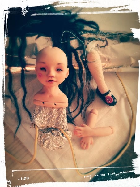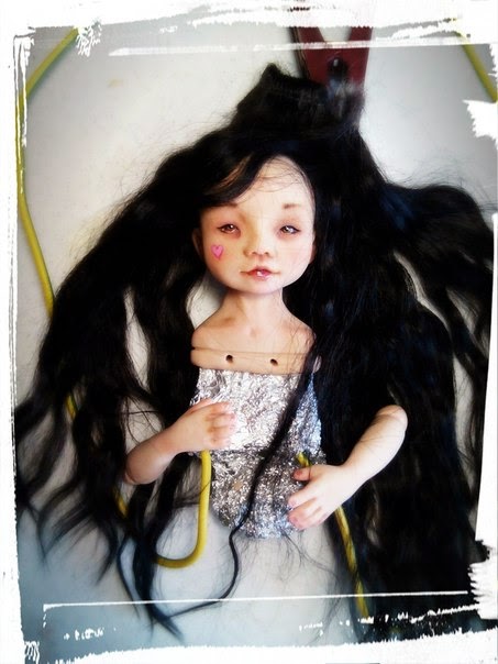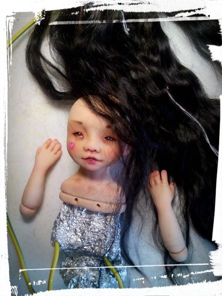 Созрела я на куколку-болтушку. Самое трудное для меня - это руки. Еще одну руку слепить не проблема, а вот вторую, симметричную ей...тут пришлось попыхтеть). Безусловно, с опытом все пойдет быстрее. Впервые и использовала натуральный козий волос, окрашивала сама, самой дешевой краской для волос. Очень понравился процесс). Тем более, сама себе волосы никогда не красила, еще и в разные оттенки, а тут, мой любимый эффект непредсказуемости в конечном результате - сюрпризы я люблю. (А кто их не любит??))