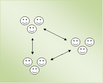 This diagram is, of course, a gross over-simplification. To get a more accurate picture, imagine hundreds of groupings representing churches, denominations, schools of thought, and nations, all interconnected. The web of relationships and the flow of the conversation – will necessarily be very complex.