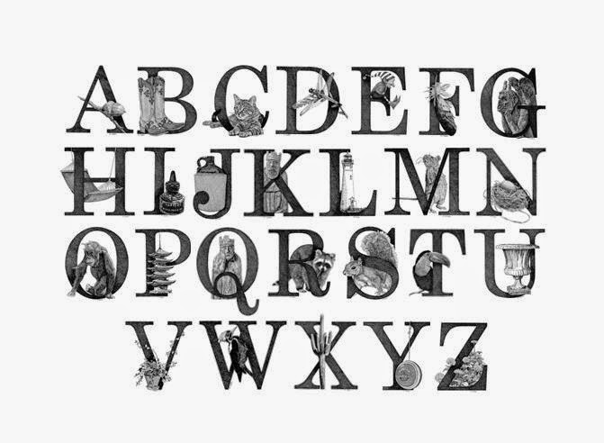 I've just finished creating an illustrated alphabet, something I've always wanted to do. I had so much fun creating the drawings. I wanted it to be whimsical, being appropriate for children and appealing to adults. Also, I didn't want to use the typical "A" is for apple, "D" is for dog images. My only homage to such an alphabet is the cat I used for "C".