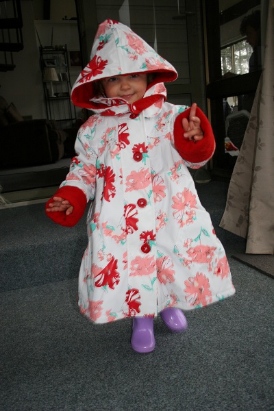 Hannah with tulip. That looks a cosy jumper too. I wonder who knitted it?