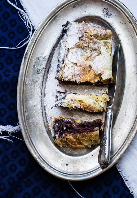 - Kenjük rá a szilvás masszát a leveles tésztára, úgy, hogy előtte a végeiből hajtsunk be fél-fél centit, hogy minél kevésbe tudjon esetlegesen kifolyni a töltelék.