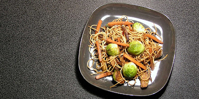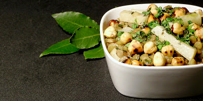 Hámozás, tisztítás után -egy fél fej zeller kivételével- a zöldségeket vékonyan felszeleteljük. Felforrósított serpenyőben, vajon párolni kezdjük őket: először a zellert, amikor illatozni kezd és mindenhol bevajazódott, hozzáadjuk a petrezselyemgyökeret, később a karalábét is (ennek híján jégcsapretket használtam). A zöldségeket a vajban átlátszóra pároljuk, majd felöntjük annyi vízzel, amennyi éppen ellepi. Kis lángon puhára pároljuk.