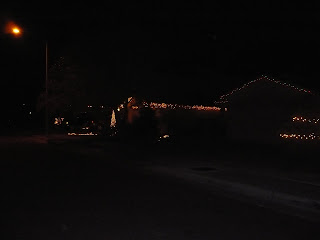 When we moved into our neighborhood we knew that they got into the holidays, however we didn't realize just how into Christmas our street got. There isn't a house on our street that isn't decked out for the holidays, ours included. Here are some pictures of our street, granted these are before the entire street was done but you get the idea...