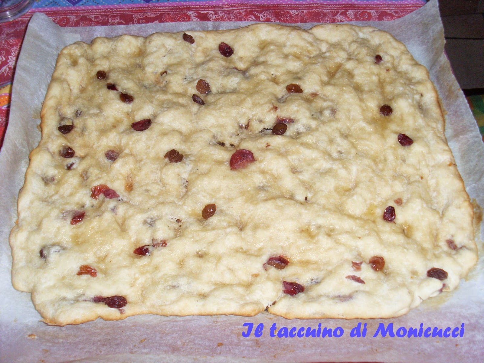 Focaccia dolce con uvetta e mirtilli rossi (vegan)