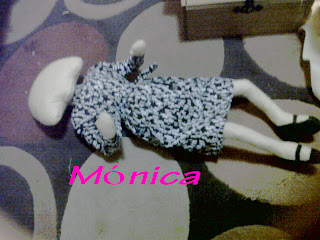 Después se le mete el traje por la cabeza y se colocan la cabeza, los ojos la nariz se le hace la boca y por ultimo el pelo que lo pusimos de lana, los ojos son abalorios y se los pusimos de color negro.