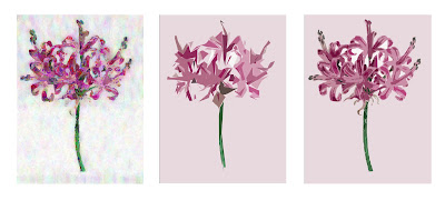 To develop the idea for the quilt, I scanned the picture of the ad and took it into my art programme on the computer. I then played around with various filters and chose one to use as inspiration. There were a few that looked possible: