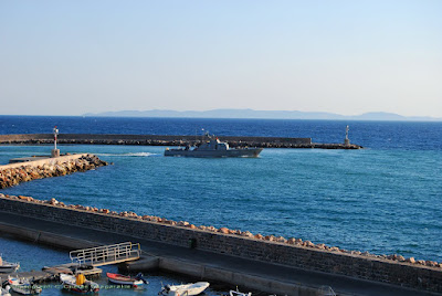 A beautiful morning.. the seas and the skies deep blue and the boats coming and going..